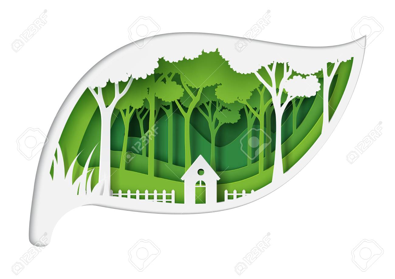 Green Eco Friendly Living And Forest Nature Landscape With Ecology Royalty Free Cliparts Vectors And Stock Illustration Image 94978601