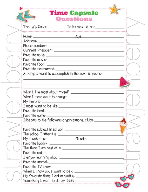 Time Capsule Questions Free Printable V Creatingmaryshome Com