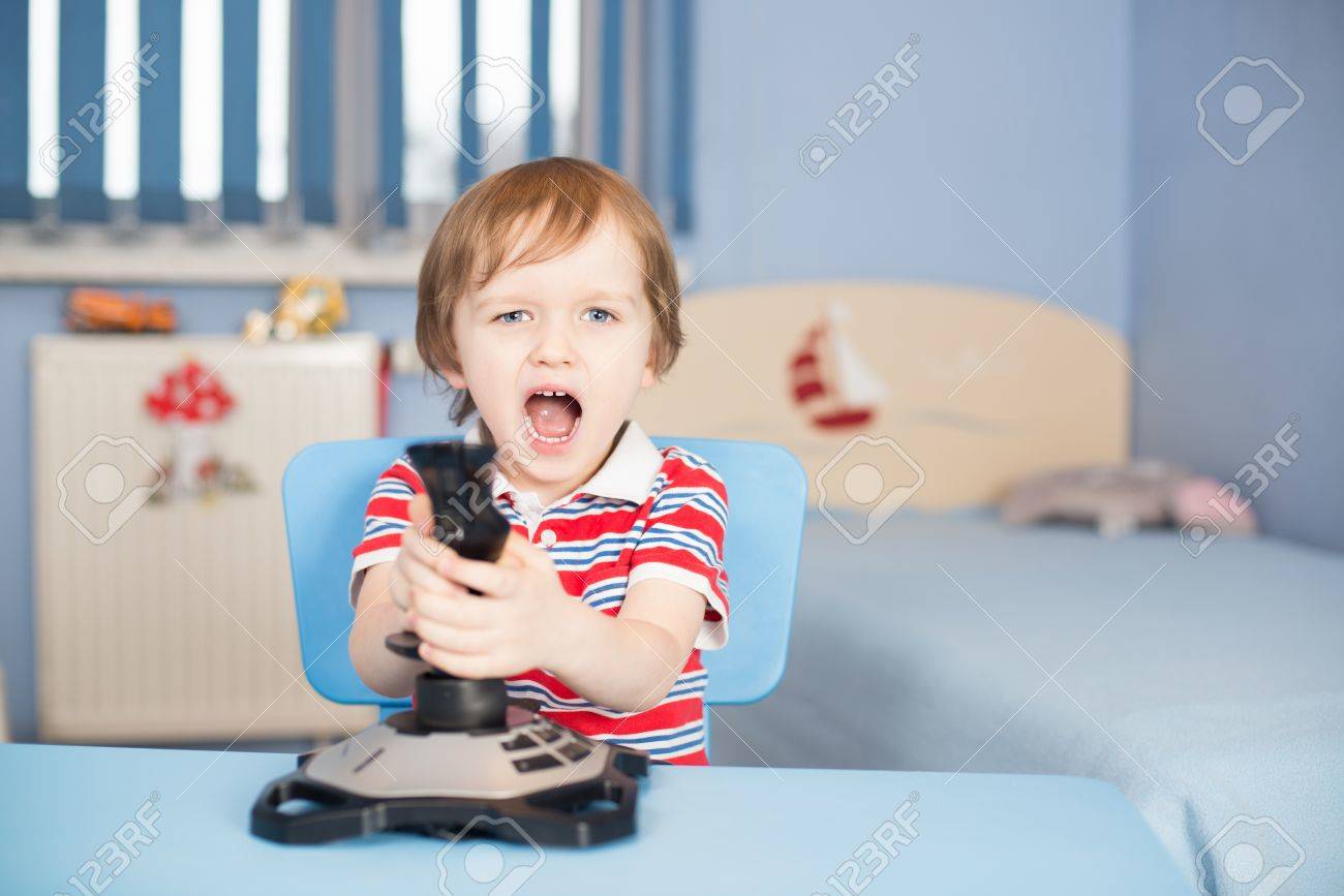Baby Boy Screaming When Playing Computer Games With Joystick Stock Photo Picture And Royalty Free Image Image 16847870